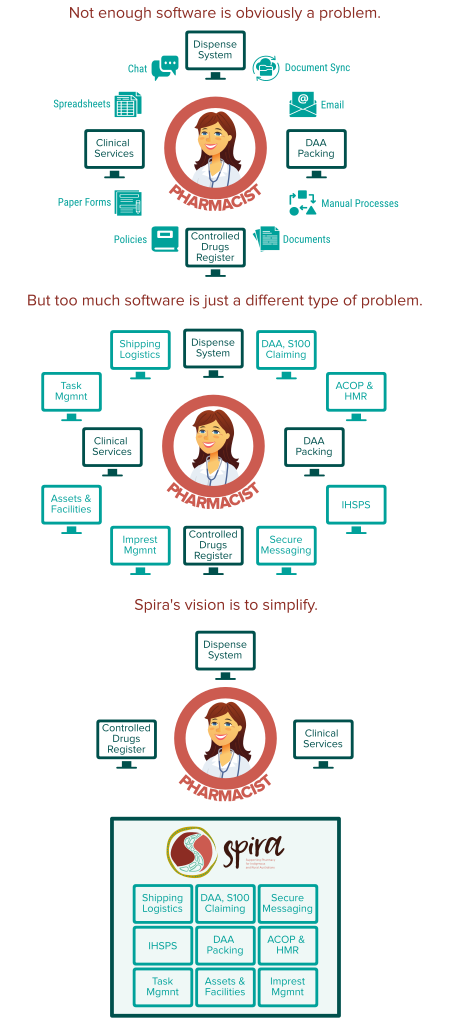 Adding more software just creates a different set of problems. What is needed is software that allows rural/remote pharmacies to do everything they need to do - all in one place. That means: